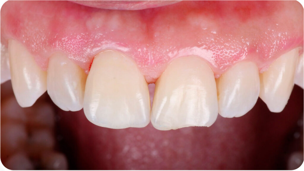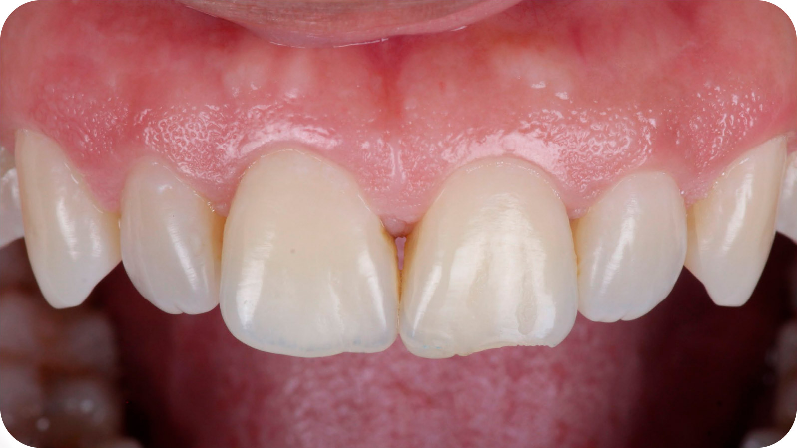 Paciente com queixa de fratura incisal do elemento 2.1 procurou o consultório com o desejo de corrigir a estética, com naturalidade, buscando as referências dos dentes adjacentes.