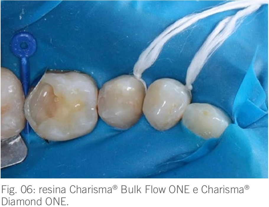 Entre os materiais disponíveis, destaca-se a resina Charisma® Bulk Flow ONE, um compósito fluido desenvolvido para restaurações diretas com a técnica bulk fill. Sua tecnologia de modulação da translucidez permite excelente integração estética e mimetização com o substrato dentário, mesmo em cavidades de profundidade variável. Além disso, apresenta propriedades físicas otimizadas que asseguram resistência ao desgaste e adaptação marginal adequada, proporcionando um resultado estético e funcional de alta qualidade.